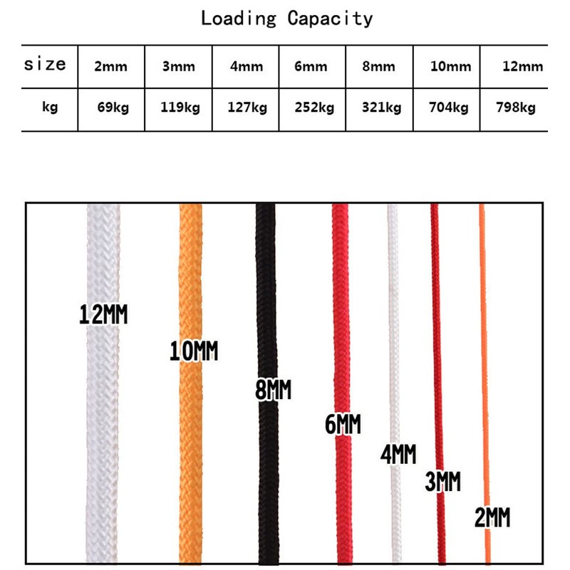- ①Size:Thickness:2/4/6/8/10/12mm;Color:Black,Green,Blue,Orange,White,Purple;Length: 20m(64ft),Super long length gives you lots of freedom for most situations.