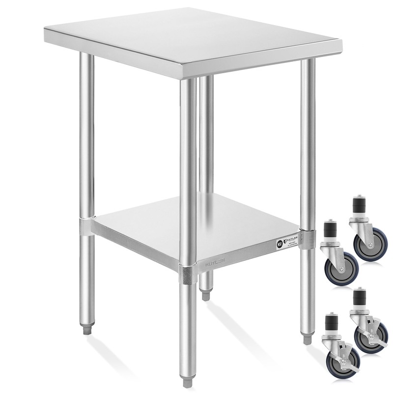- Versatile stainless steel work tables: These stainless steel prep tables excel in versatility, extending beyond commercial kitchens to cater to various needs. These work tables adapt effortlessly to catering events, food trucks, laboratories, medical facilities, and industrial workshops. KUTLER's tables are versatile enough to be used at home, in the garage or laundry room.