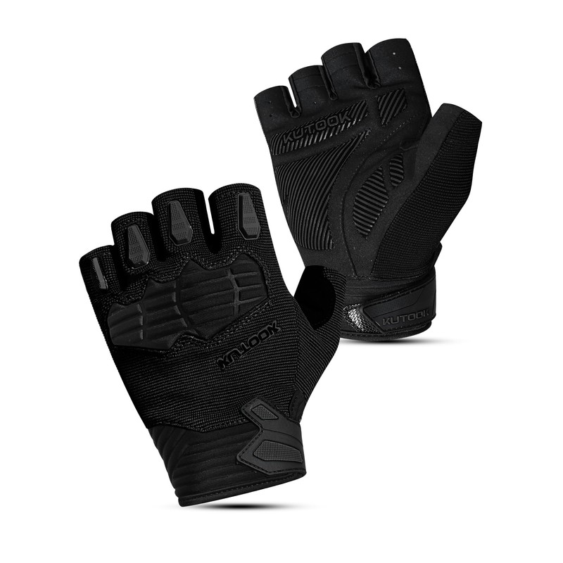 KUTOOK Cycling Gloves for Men Women Half Finger Mountain Road Breathable Dirt Trek Bike Accessories Gloves with Wrist Guard Anti-Slip Bike Gloves for Fitness Training Outdoor Sports Black M