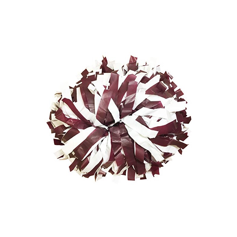 kuugear Pair, 6" Plastic Cheerleading Pom Pom with Baton Handle - Maroon/White