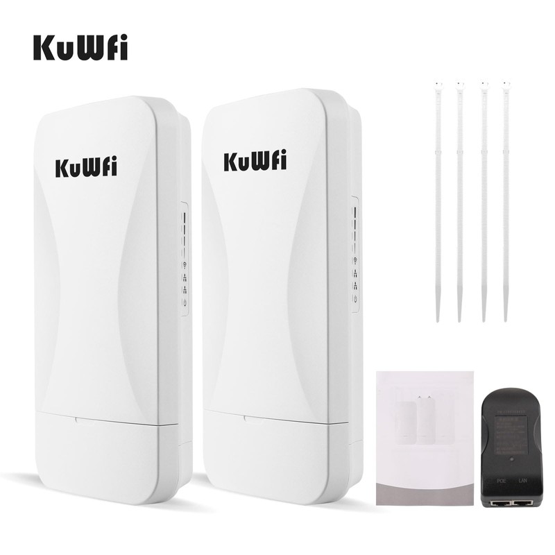 KuWFi Point to Point Gigabit Wireless Bridge 5.8G 900Mbps 1Gbs LAN Ports Long Range CPE Bridge Network Extend Outdoor 3KM/1.86Miles to of Shop, Barn,Farm and CCTV Connection