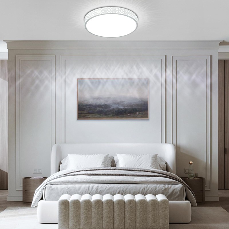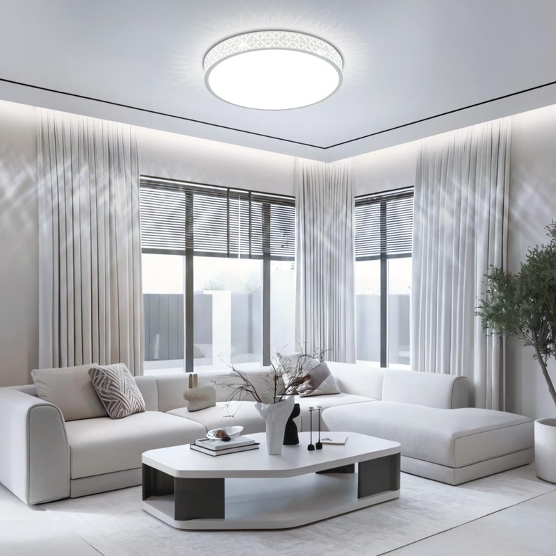 - Openwork design: this ceiling light is gently scattered thanks to the finely coordinated cut-outs. The light effects that make the slots in the edge are really very beautiful and sometimes something completely different than usual. They can be seen not only on the ceiling, but also on the walls, making them unique and atmospheric and perfect for modern and stylish interiors