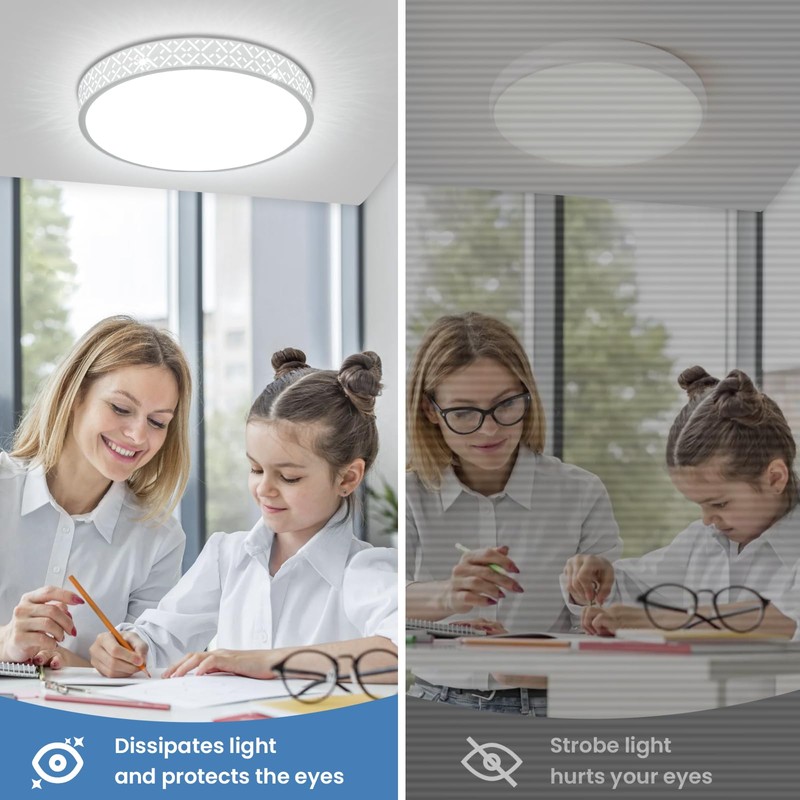 - Energy-efficient and eye-friendly: this ceiling light consumes only 18 W, saves 90% energy and offers the brightness of a 150 W lamp. With high-quality LEDs for even, glare and flicker-free light - protects the eyes and ensures healthy light