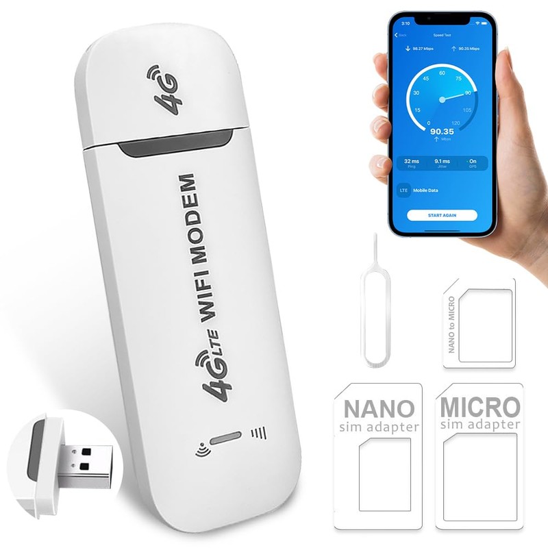 - [Portable sim internet key]-wifi usb connection. Connect and use. Can be connected to a power bank, computer/USB/USB car charger, etc. ADSL alternative. No telephone line is required. You just need a sim has 4g signal Complete your web browsing. Save living expenses by covering a wide range of 10 meters.