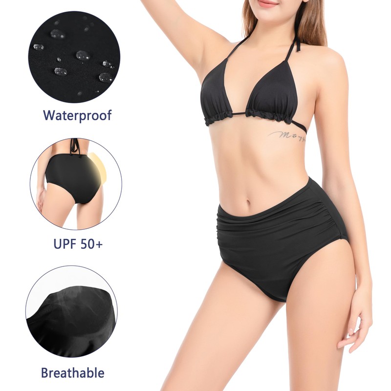 Kvitko Period Swimwear High Waisted Bathing Swimsuit Bottoms Tummy Control for Women Teens Black