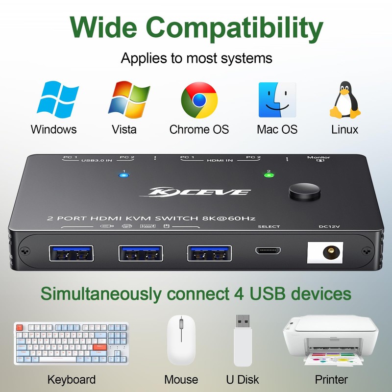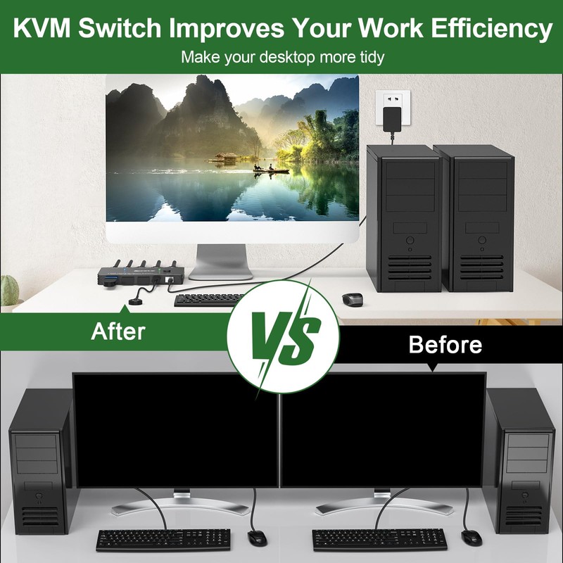 - 【8K@60Hz KVM】 8K KVM switch supports up to 8K@60Hz. ✔✔✔Warming: Please use HDMI2.1, if the set distance allows,the length of cabels more short more better.