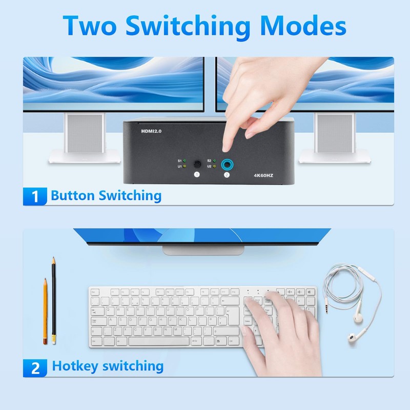 - Flexible Multi-Monitor Setup: Whether you need two, three, or four screens, this switch adapts to fit your needs. Enjoy options for extended, mirrored, or spliced displays up to 4K.