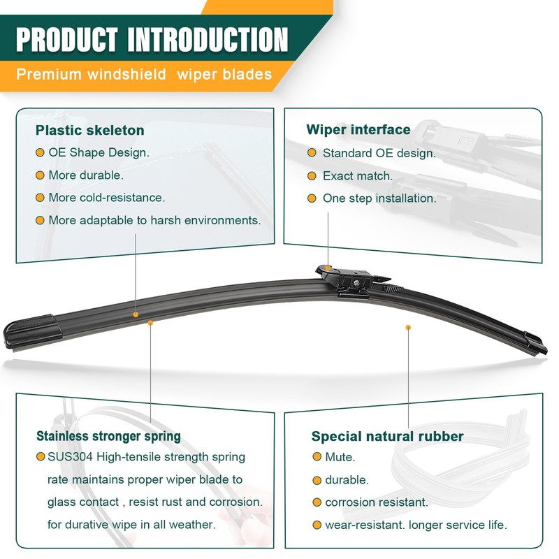 • PERFORMANCE: Strictly controlled quality and preferred materials making sure the wiping is the best, quiet wiping without judder or squeaking, resistant and a long service life.