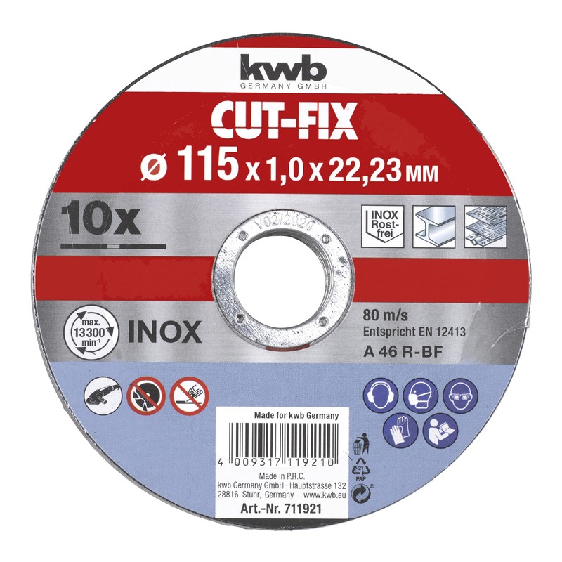 - Each cutting disc is extra thin for little material loss and has the size 115 mm x 1.0 mm with 22.23 mm bore.