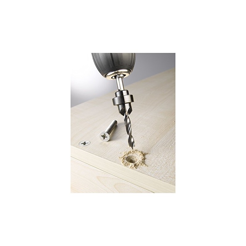 - Wood drill with centre point, adjustable countersink and depth stop.