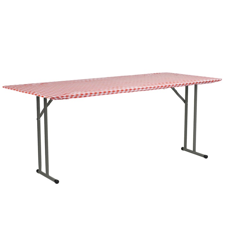 - Bundle of 5 Red and White Gingham Fitted Plastic Table Covers to fit 8' long 18" wide (bench or side) table