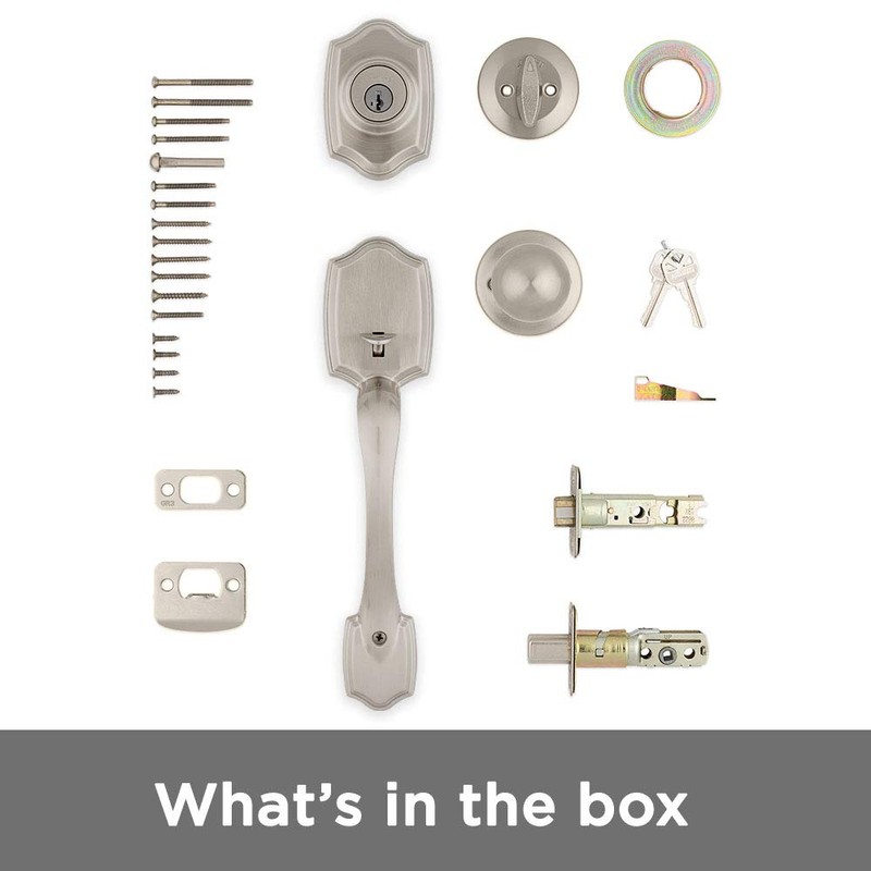 As the industry leader, Kwikset has provided trusted security for over 60 years and has become synonymous with security, peace of mind, style and innovation. The beveled design of the Belleview adds elegance to its traditional arched shape. Classic lines and enhanced styling make Polo a great choice for many home designs and the perfect enhancement for traditional or contemporary homes. The crisp, clean appearance of the Satin Nickel finish adds to the overall look of the product and brings a modern feel. This single cylinder handle set can be locked or unlocked by a key on the outside, or the turn button on the inside. SmartKeyRe-key Technology allows you to control who has access to your home. Re-key the lock yourself in seconds in 3 easy steps. Have you recently moved or had a child lose a key? It’s time to re-key. Smart Key provides the highest level of residential security and features Bump Guard to protect against lock bumping.