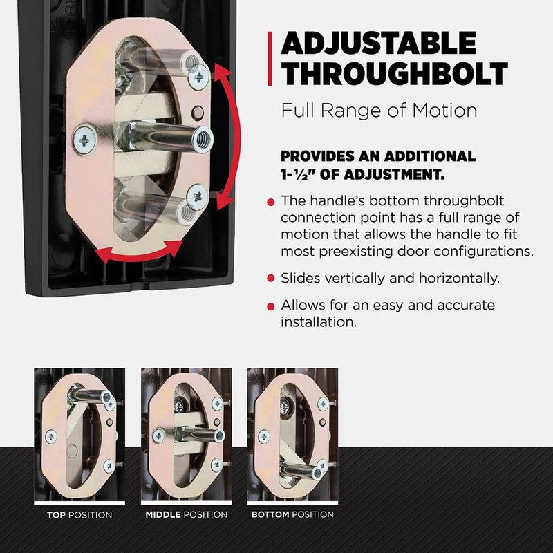 - Latch has adjustable backset 2-3/8" to 2-3/4" to fit all standard door preparations and is easy to install with a screw driver