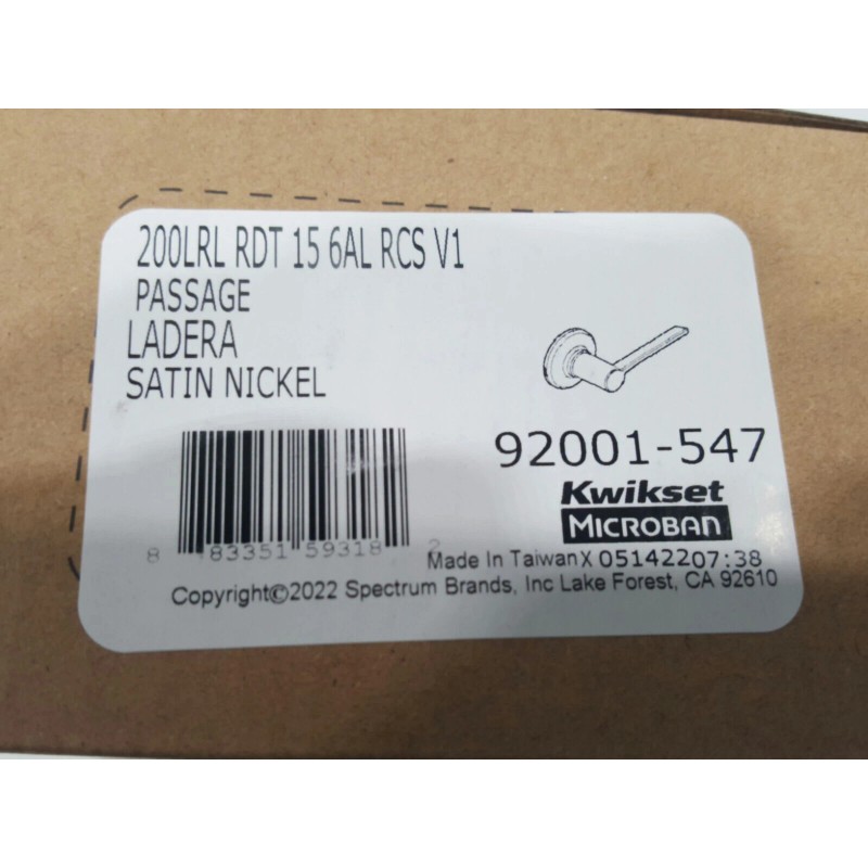 Kwikset Microban #92001-547 Satin Nickel Passage Ladera Door Handle, New