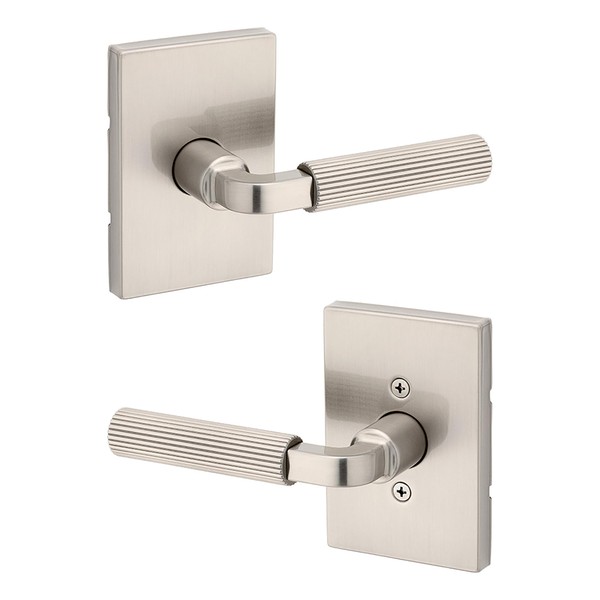 Kwikset Mirada Reeded Interior Passage Door Handle, Lever for Closet and Hallway Doors, Reversible Non-Locking Handle Lever, Satin Nickel, with Microban Protection