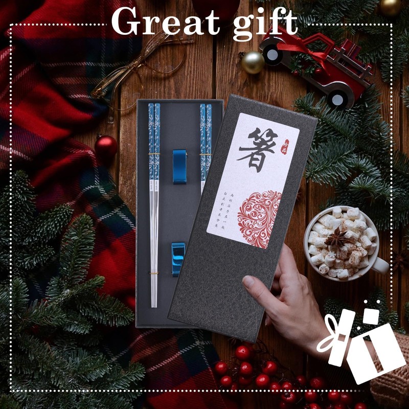 - 🥢🎁【Exquisite packaging】chopsticks set is packaged in a beautiful gift box. The unique design and gift box packaging makes this product a great gift.chopsticks metal means good cooperation and best friendship. Therefore, on the commemorative day such as festivals, birthdays and gatherings, metal chopsticks are good gifts for friends, relatives, family and cooperatives