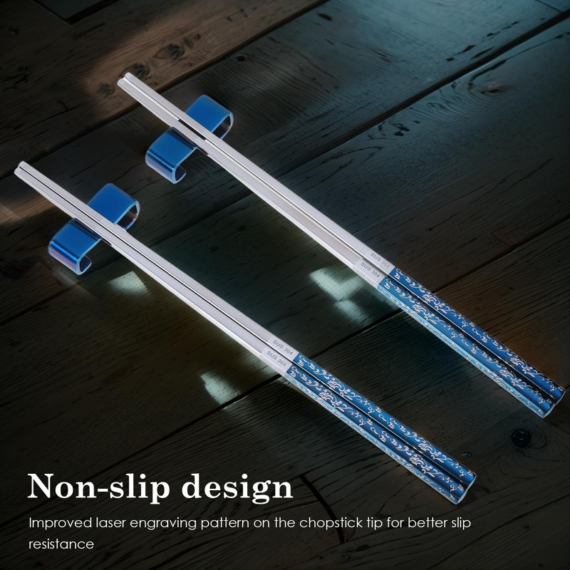 - 🥢🎁【Upgrade non -slip design】chop sticks adds fashion line laser carvings to the tip. Compared with other metal chopsticks, our chopsticks with holder can better grasp and retain food. stainless steel chopsticks is easy to use and avoids the embarrassment of giving up food. Traditional reusable chopsticks solve the problem of food slipping due to the smooth surface. At the same time, chopsticks metal is very light. Even a person who is injured on the hand is very easy to use and will not cause