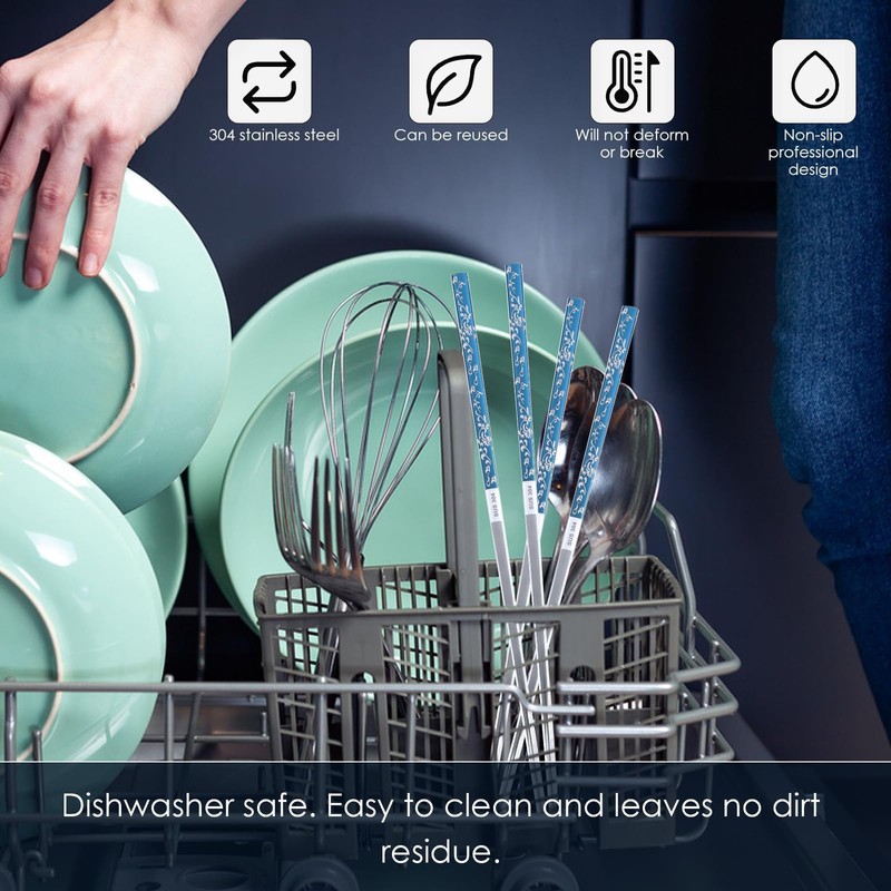 - 🥢🎁【Safe dishwasher】 Our korean chopsticks can be cleaned with dishwasher/disinfection cabinet. It can bear all temperatures during cooking, use and washing without worrying about melting or damage. cooking chopsticks will not breed bacteria, ensure our mouth safety and good health. Bamboo chopsticks must be replaced every three months because they are prone to mold during use and difficult to clean. stainless steel chopsticks are easy to clean and have no mold problems.
