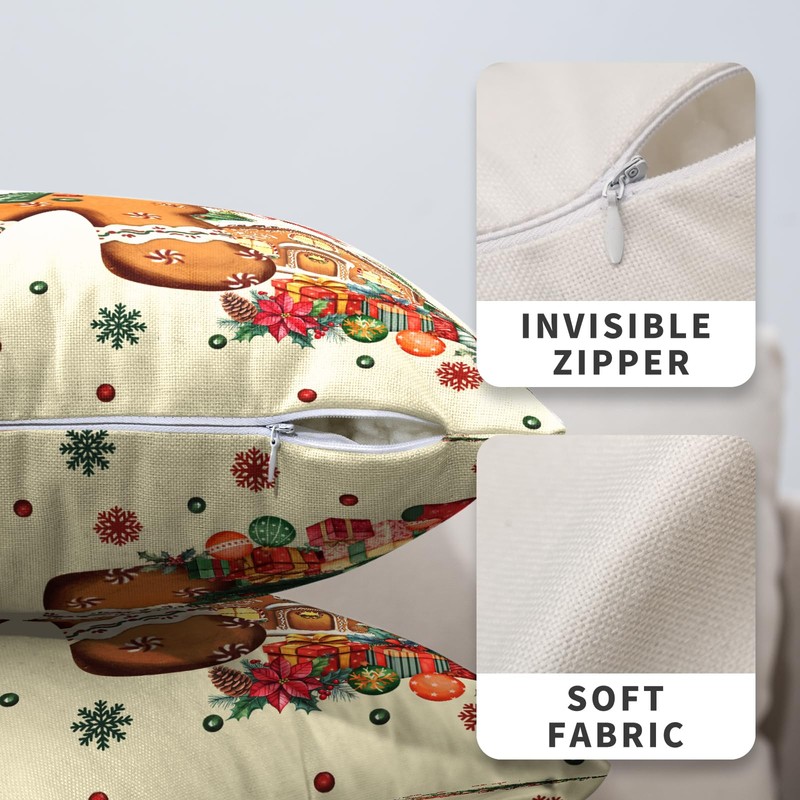- Invisible Zipper:This Christmas gingerbread decorative pillowcases has an invisible durable zipper,the invisible zipper at the bottom of the Christmas gingerbread pillow cover is convenient for stuffing the pillow insert while not affecting the aesthetics.
