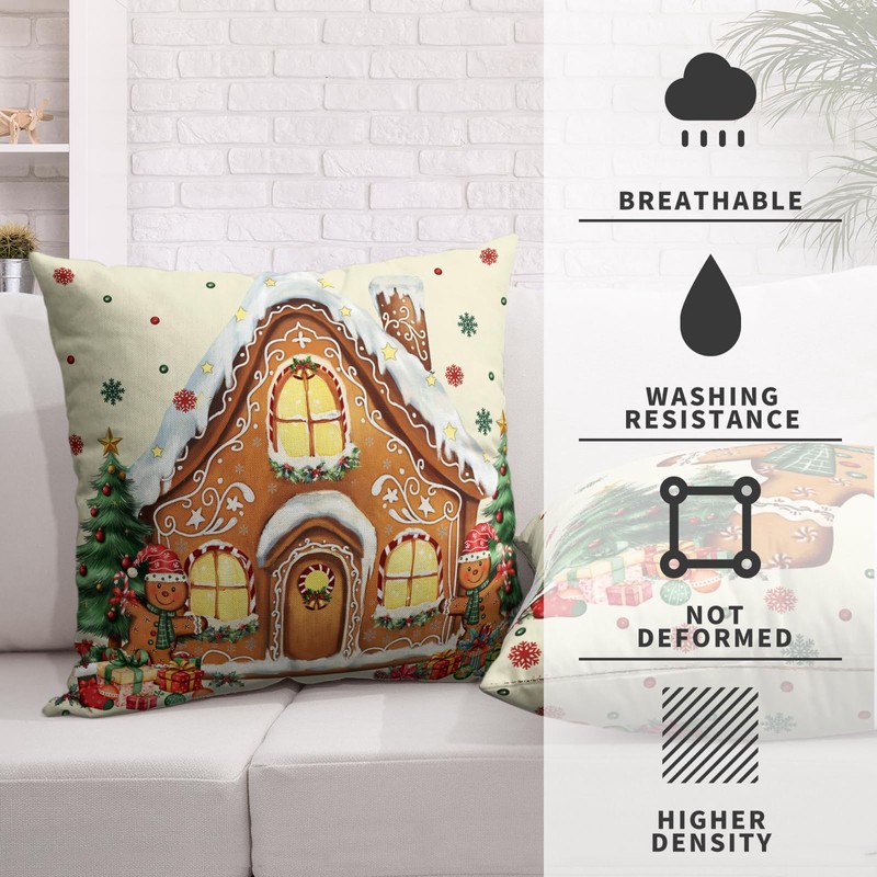 - Size & Material: Five sizes(16 x 16/18 x 18/20x 20/22 x 22/24 x 24) Christmas gingerbread pillow cover, fits most family pillows, not included inserts or fillers.Our Christmas gingerbread pillow covers are made of cotton linen fabric, soft and skin-friendly, no fading or abrasion,brings a great touch, kin-friendly for kids and pets.