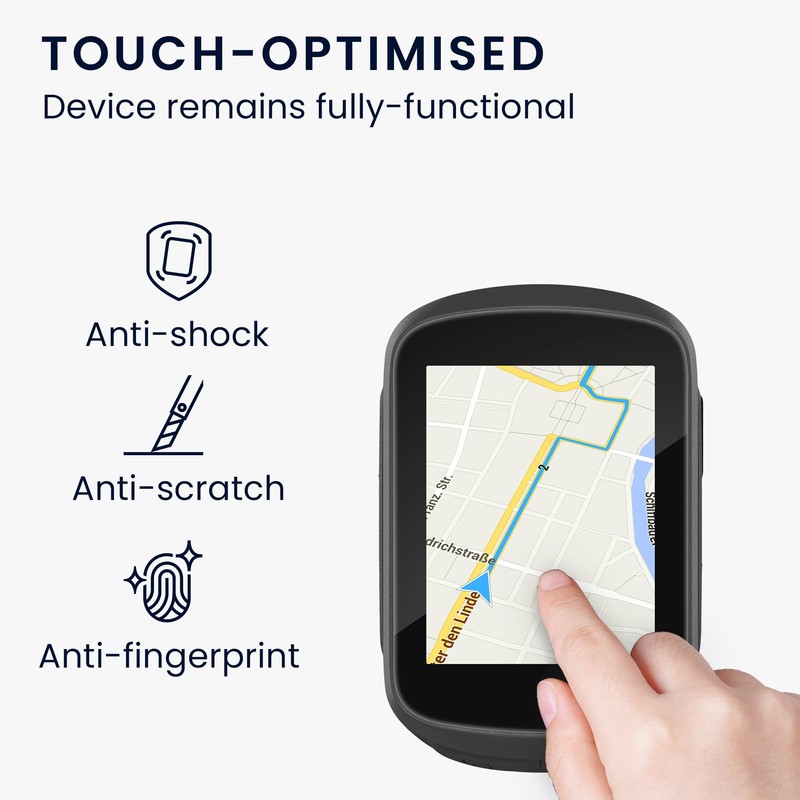 - Quality Technology: This bicycle GPS screen protector is not only anti-shock, but also anti-fingerprint so that you can tap away without leaving a mark. It covers your GPS from edge to edge easily