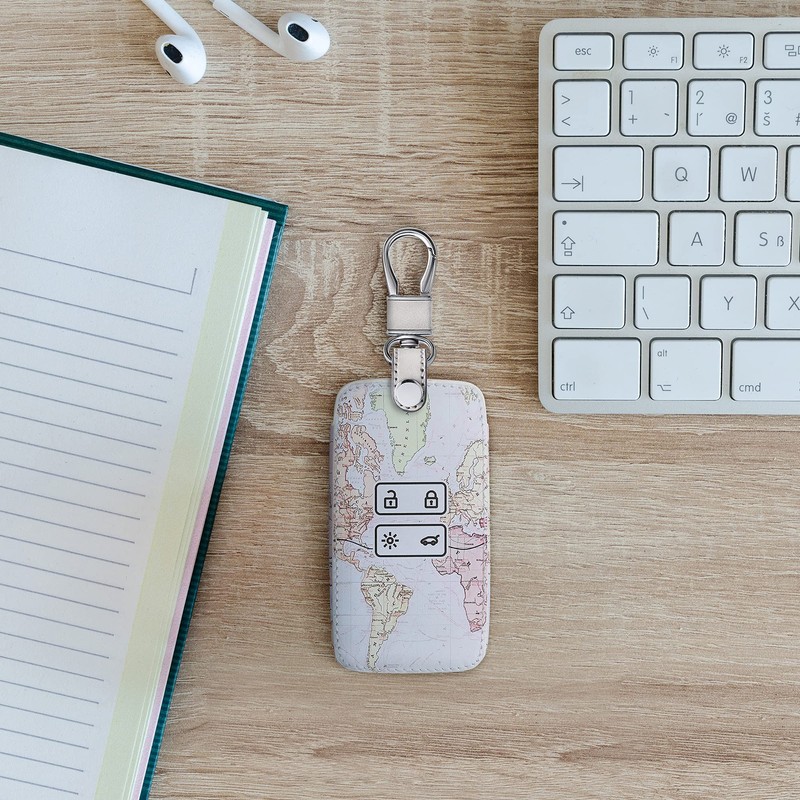 - Elegant leather look: the car key case in travel lettering design in black multi-coloured is made of robust faux leather and protects your ignition key from dirt.