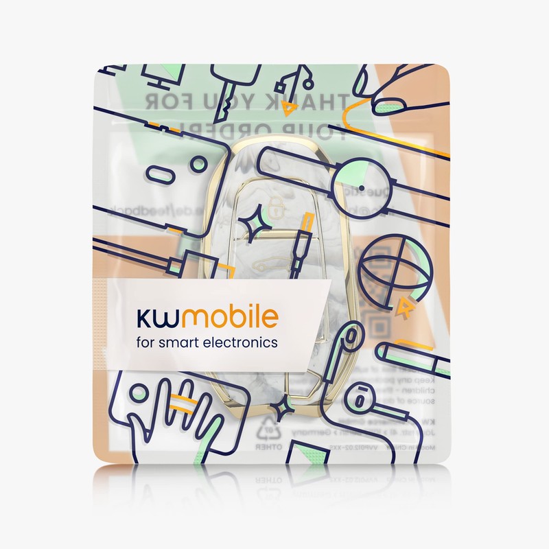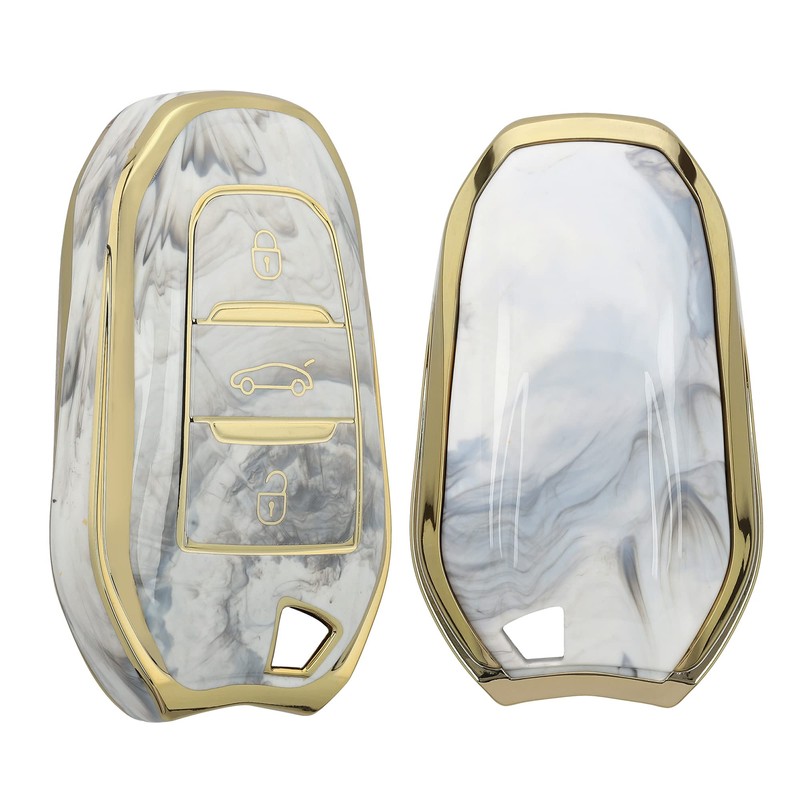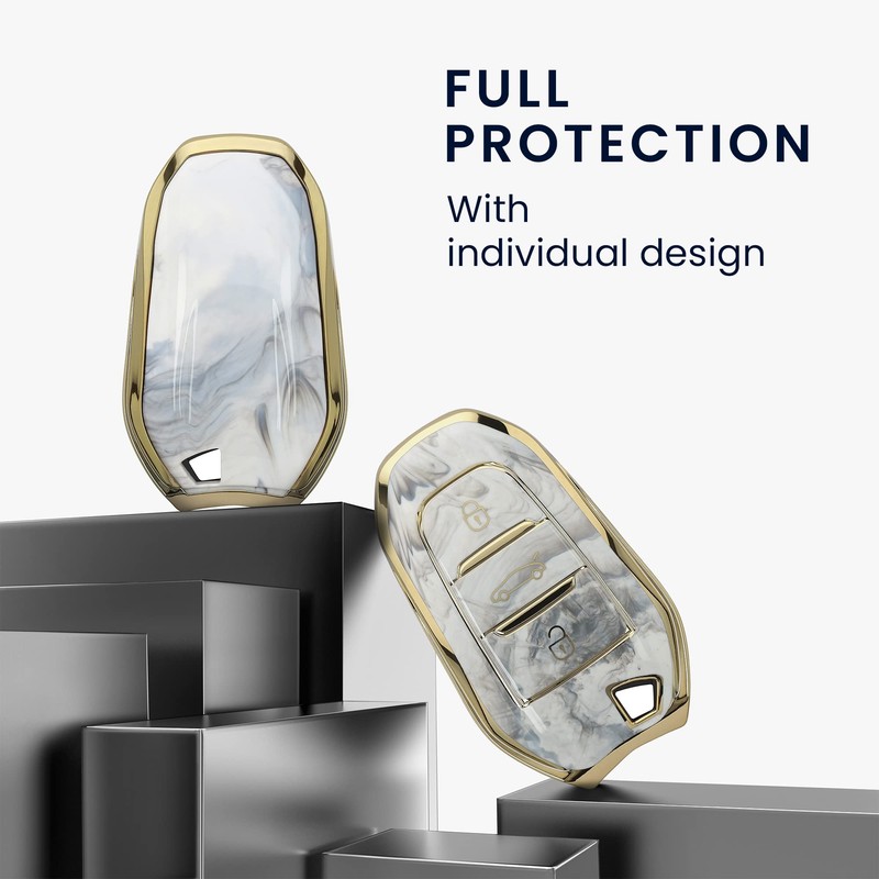 kwmobile Car Key Cover - Compatible with Peugeot Citroen 3 Button Smart Key (Keyless Go) - Design Cover - Marble Gold/White/Grey