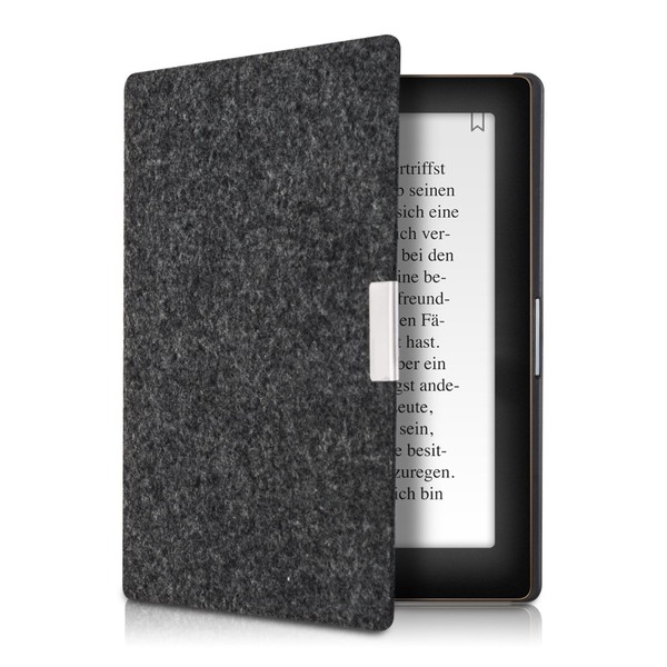 kwmobile Case for Kobo Aura Edition 1 - Book Style Felt Fabric Protective e-Reader Cover Folio Case - Dark Grey