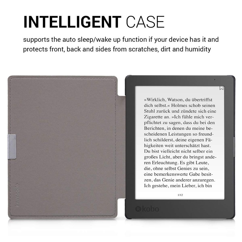 - Protective case with elegant leather look: the flip case is made of robust synthetic leather on the outside and protects your eBook reader from scratches, dirt and wear.