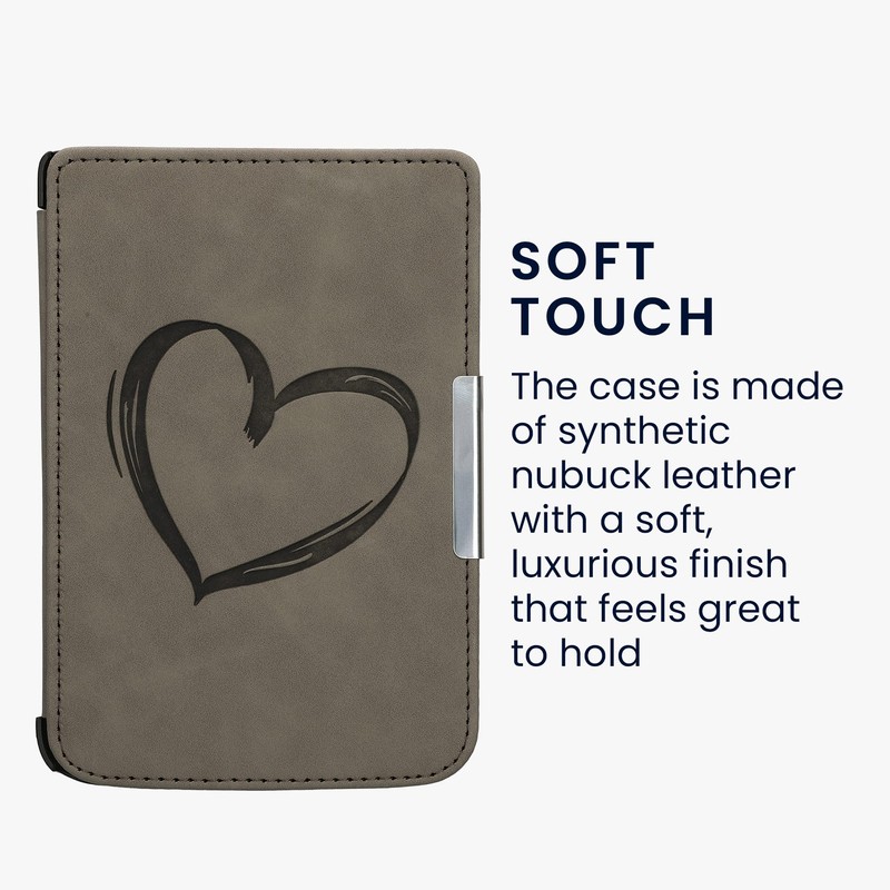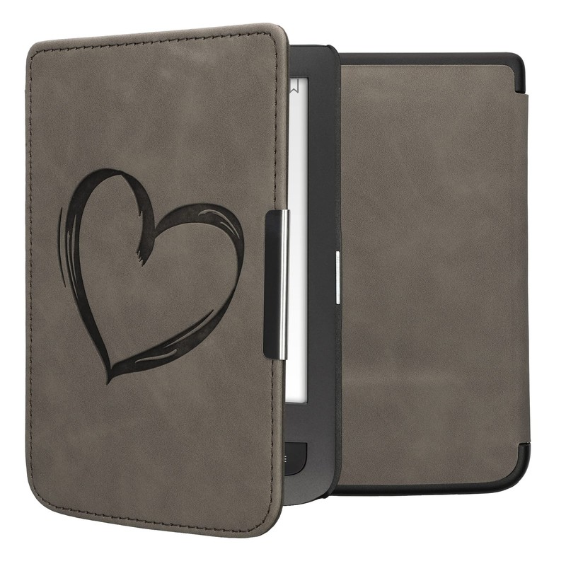 kwmobile Cover Compatible with Pocketbook Touch Lux 3/Basic Lux/Basic Touch 2 Cover - eReader Case - Brushed Heart Grey