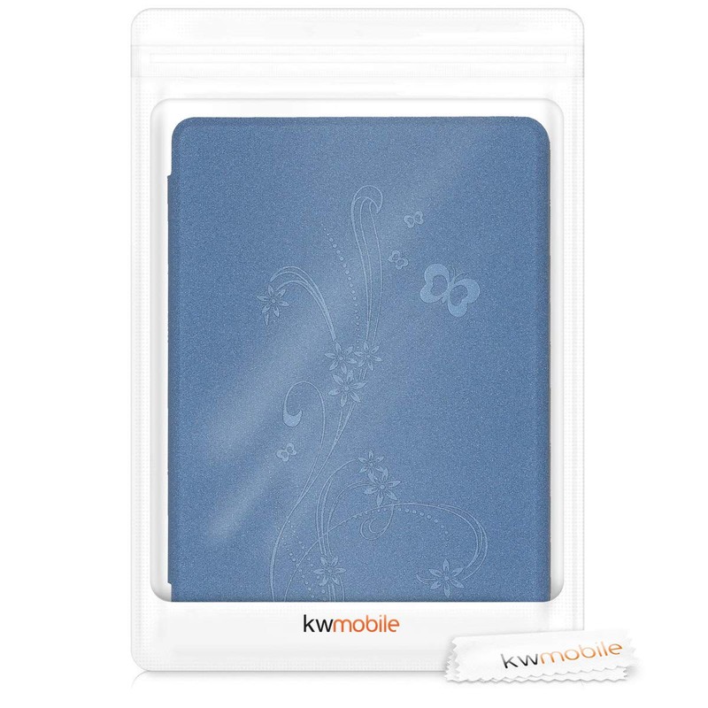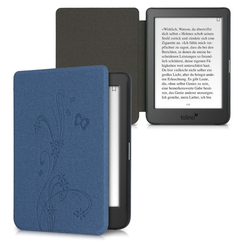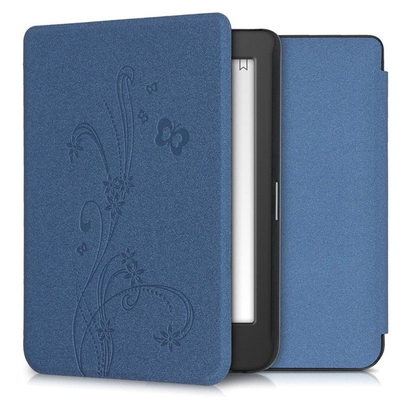 kwmobile Flip Case Compatible with Tolino Page 2 Case - eReader Case - Tendrils Butterfly Dark Blue