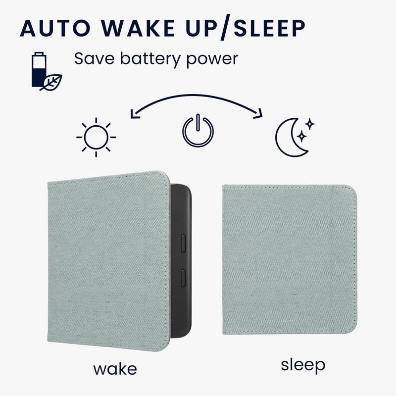 - Protective case with elegant denim look: the flip case is made of robust denim fabric on the outside and protects your eBook reader from scratches, dirt and wear.