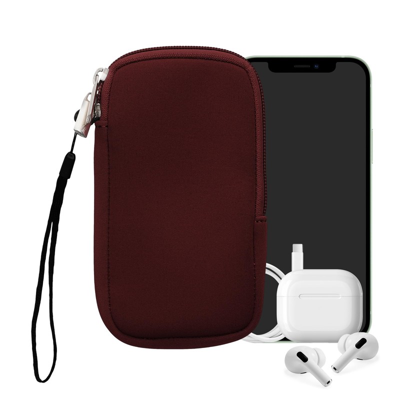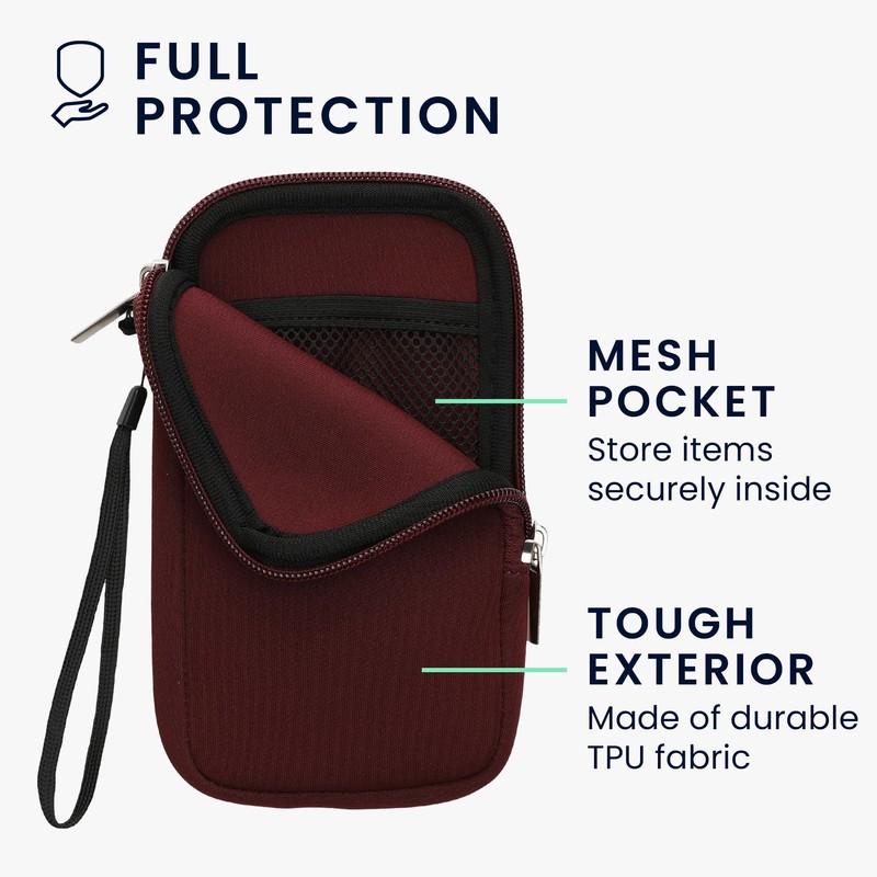 kwmobile Neoprene Phone Pouch Size L - 6.5" - Universal Cell Sleeve Mobile Bag with Zipper, Wrist Strap - Bordeaux Violet