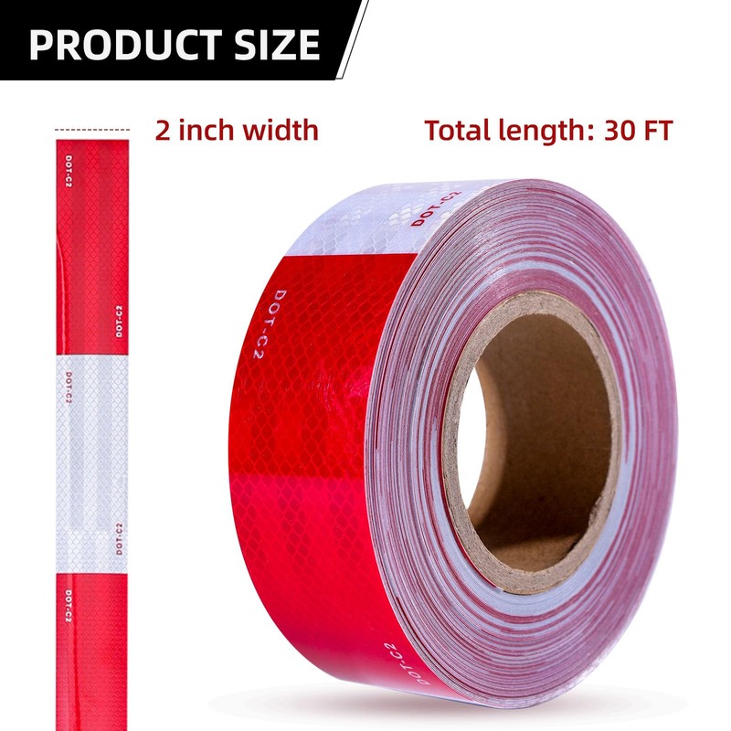 Kwtpsg High Visibility Reflective Tape, Waterproof Red and White Conspicuity Safety Tape for Trailer, Outdoor, Cars, Trucks 2 Inch x 30 Feet