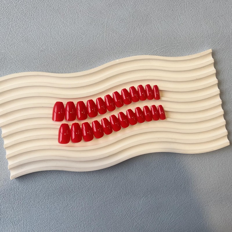 KXAMELIE Red Medium Square Press-on Nails, 24 PCS, Ballerina Shaped, Glossy Finish, Full Well Tips, Reusable