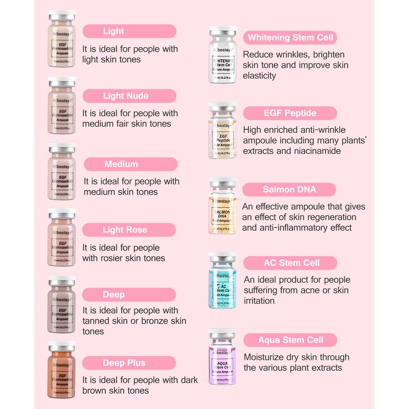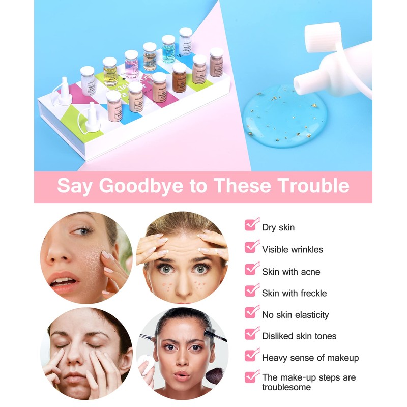 - đăSerum and liquid foundationăThis product contains 2 droppers per set, net weight 8ml*12 bottles of serum or liquid foundation, which can be applied directly or used with microneedling. These products are infused with powerful natural ingredients to give you naturally brighter skin no matter what your skin tone.