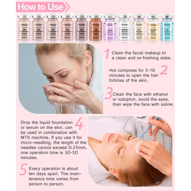 - đăSuitable for the crowdăSuitable for people with uneven skin tone, melanin, enlarged pores, dull skin tone, dry skin tone, and too late for makeup. The desired makeup can be achieved through micro-needle injection technology to achieve brightening, moisturizing, anti-wrinkle and anti-aging effects. The perfect gift for Christmas, Mother's Day, Valentine's Day, Easter and birthdays to restore her youthful radiance.