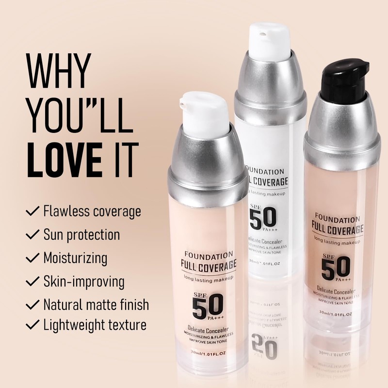 - 【SPF 50 PA+++ Sun Protection】Broad-spectrum foundation with up to 50 sun blocks provides strong protection against UVA and UVB damage.
