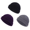 KYEDGC 3PCS Mens Beanie Hat, Wooly Hat for Men, Roll Up Fisherman Beanie, Unisex Soft & Stretchable Beanie Hat Men for Fishermen, Workers, Fashion Wear(Grey, Black and Purple)