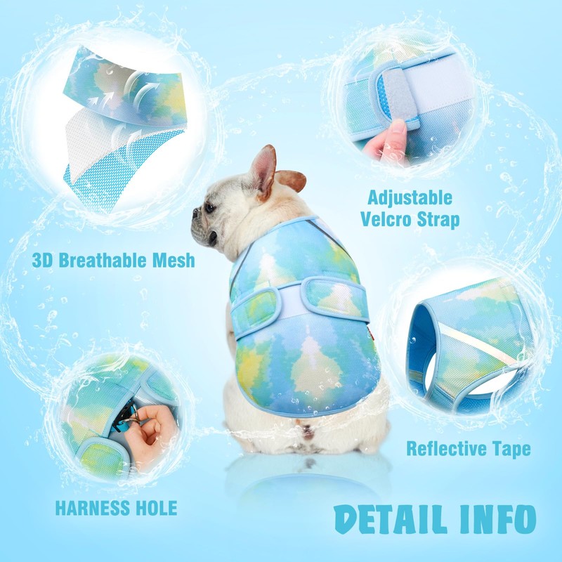 - EASY TO USE--Soak the dog cooling jacket in water, wring it out fully, then put it on your dog. For better cooling results, you can soak it in water and wring it dry and put it in the refrigerator for 10 minutes, and take it out to put it on your pet