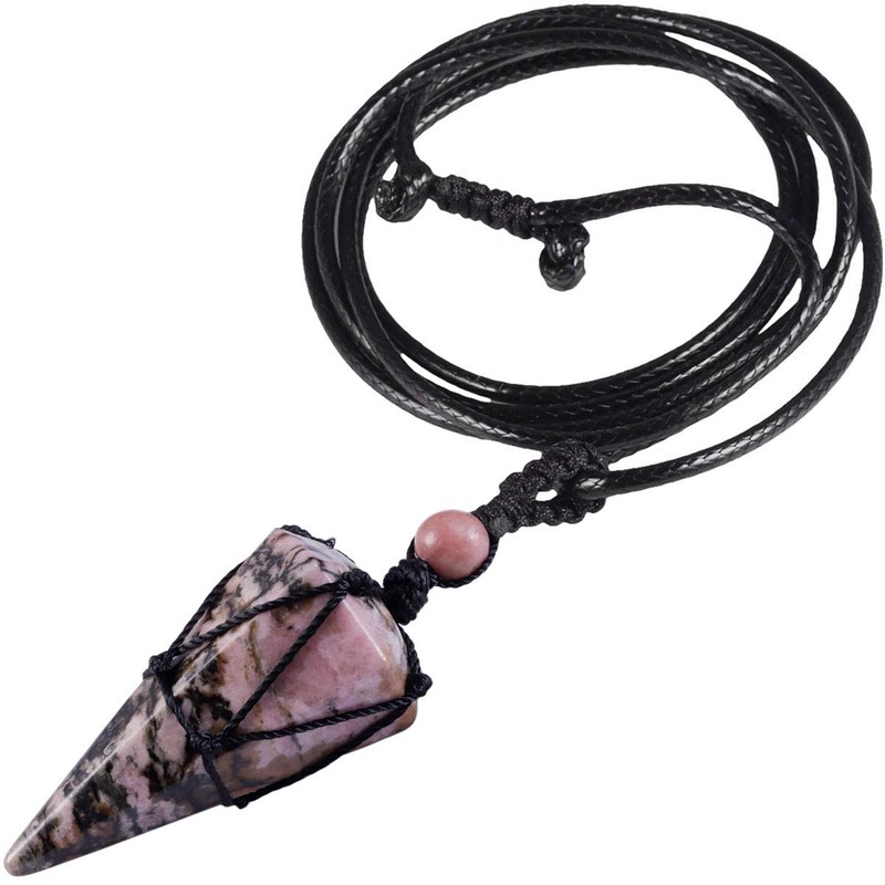 - As a pendulum: Can be used for divination, worship, magic, hypnosis, etc.. Therefore, polished hexagonal crystal pointed stone pendulum is ideal for rituals, aura, healing, meditation or chakras. Wear this Reiki healing necklace - let it stay with you to reduce negative energy.