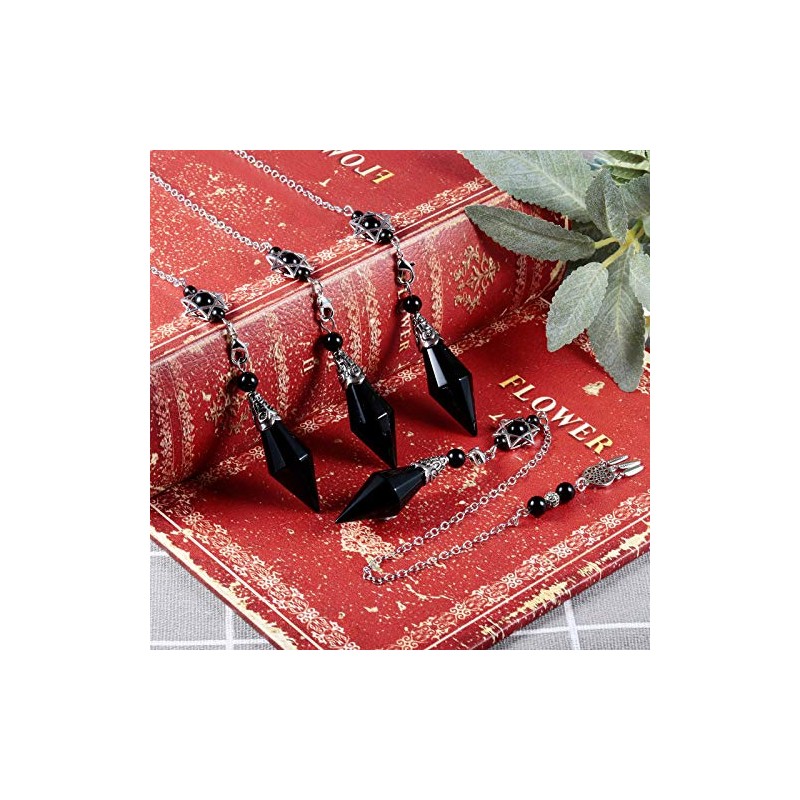 - Einzigartiges Design: Dieses Heilung Kristall Pendel besteht haupts?chlich aus einem Doppelte Kegel Obsidian Anh?nger. Die Oberseite ist mit einer Legierung mit einer Vintage-Mustergravur umwickelt. An der Legierung kette werden Runde Obsidian Perlen, Legierung Davidstern, Geschnitzt Legierung Runde Perlen und der Traumf?nger.