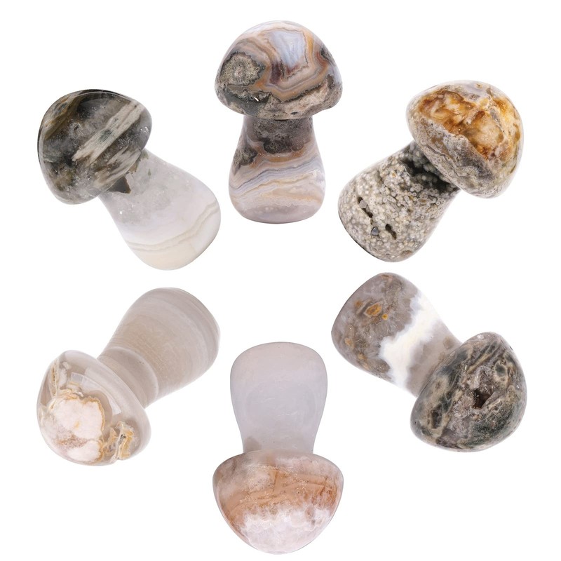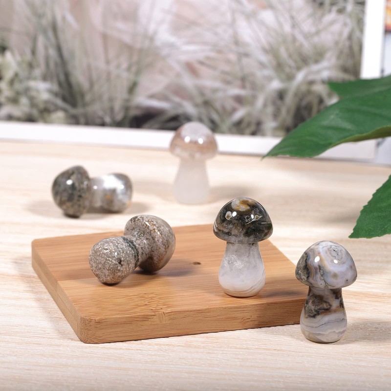 - Ocean Jasper Mushroom Figurine :Ocean jasper have a very large energy magnetic field, which can improve people's spiritual understanding. Placing ocean jasper statue can bring you strong relationships and opportunities, make your social life more harmonious.