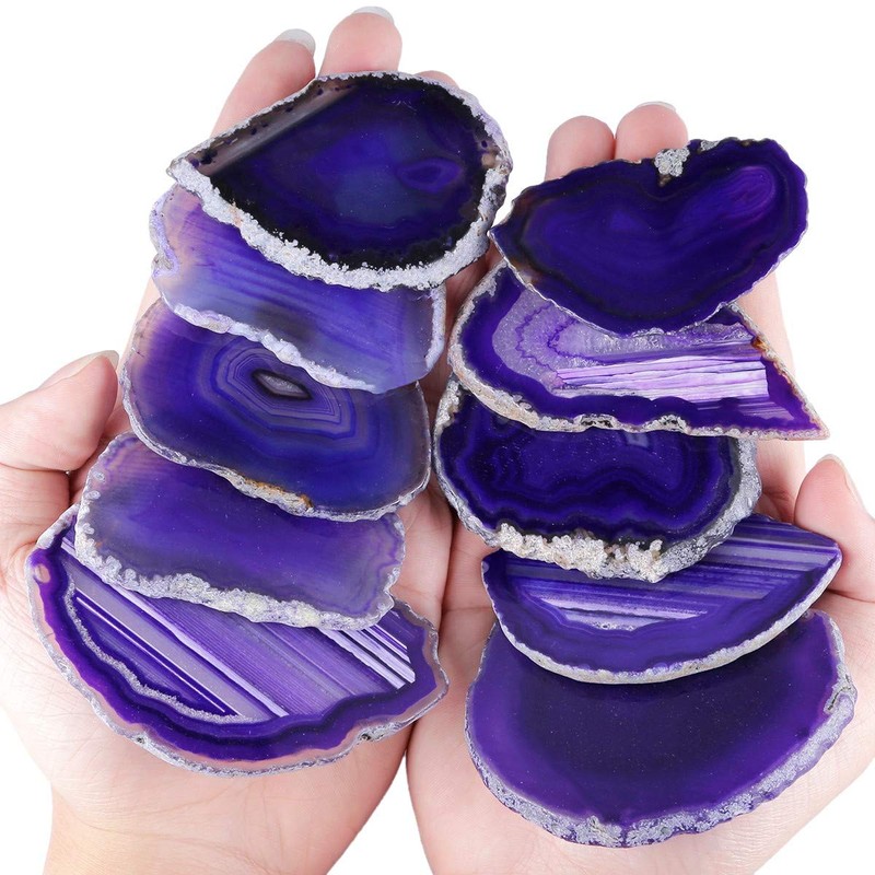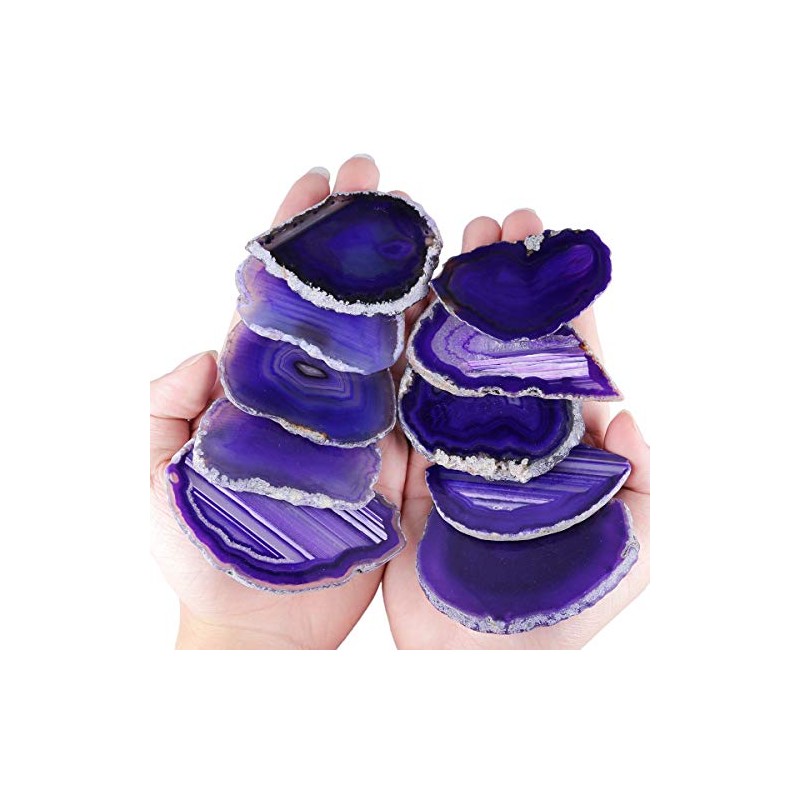 KYEYGWO Pack of 10 Irregular Geode Agate Discs without Holes, Polished Agate Gemstone Healing Crystal for Home Decoration, Jewellery Making, DIY and Healing Stone Name Cards, Purple