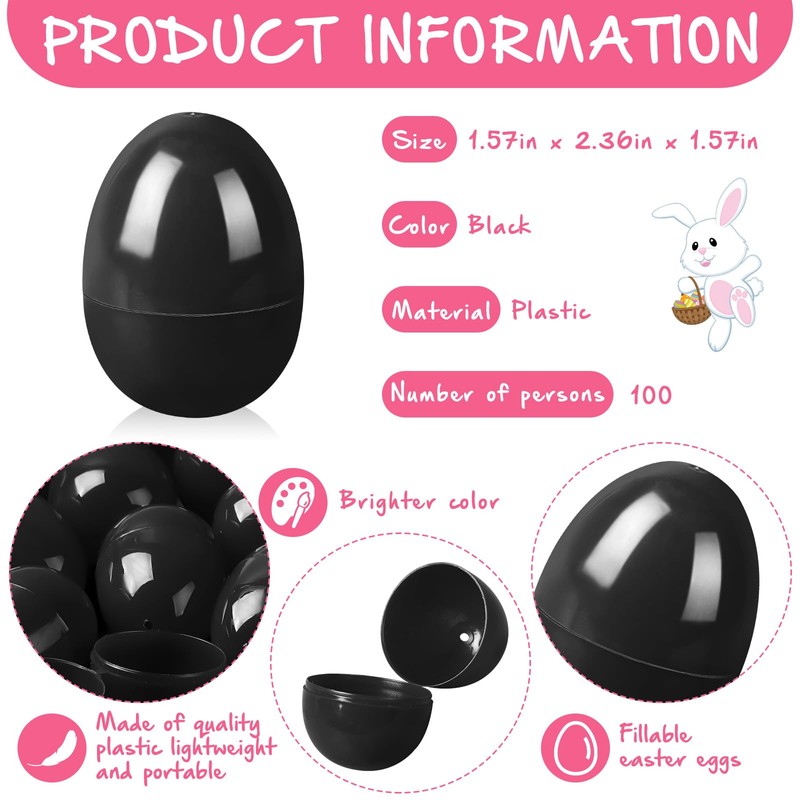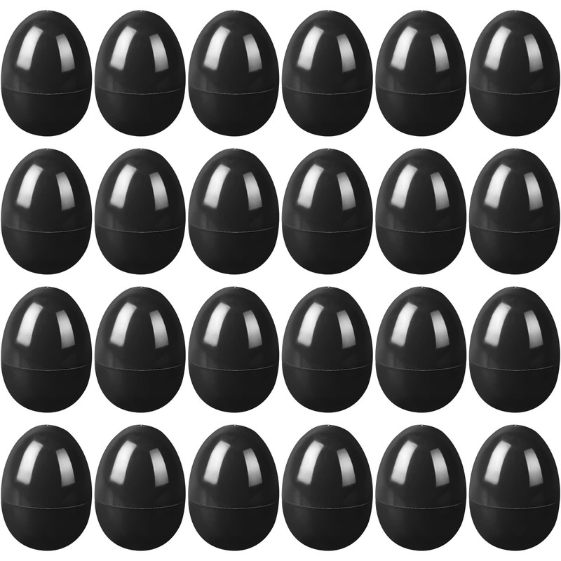 • Package includes: Package includes 24 pieces of Black plastic eggs, each measures about 2.4 inch/ 6 cm in height, 1.6 inch/ 4 cm in width; Sufficient quantity, good for creating your own Easter eggs and hiding them outside in the yard and decorating a festive centerpiece to welcome this holiday, and you can share them with friend and family