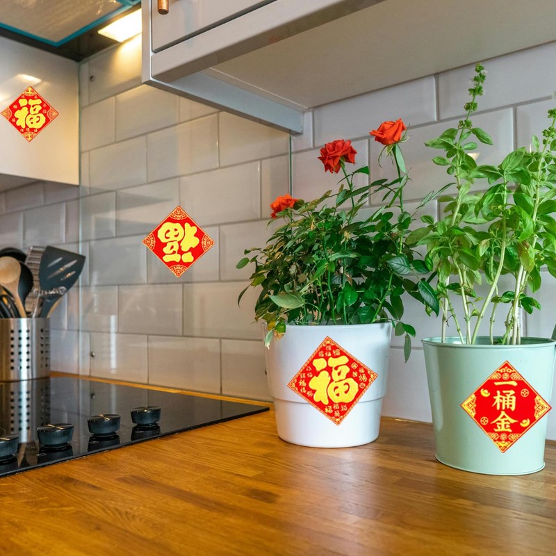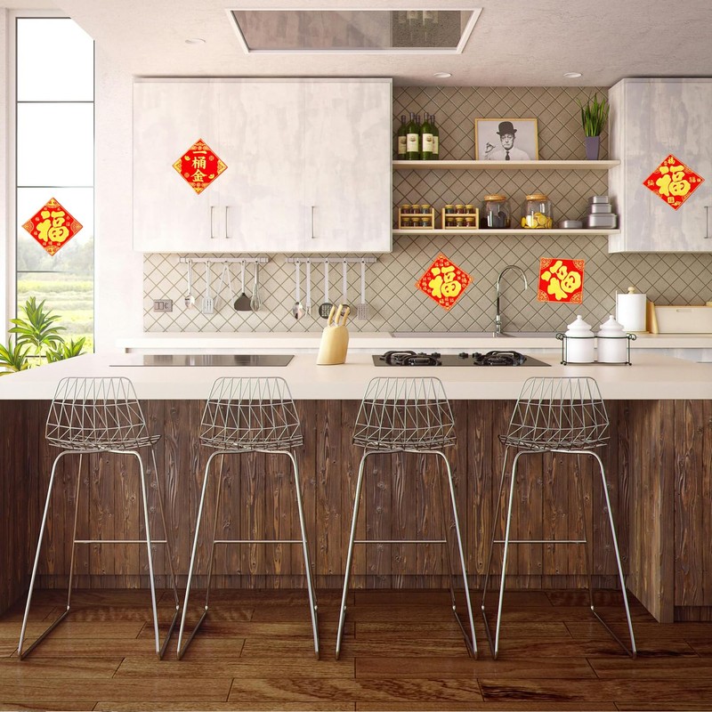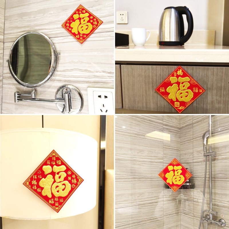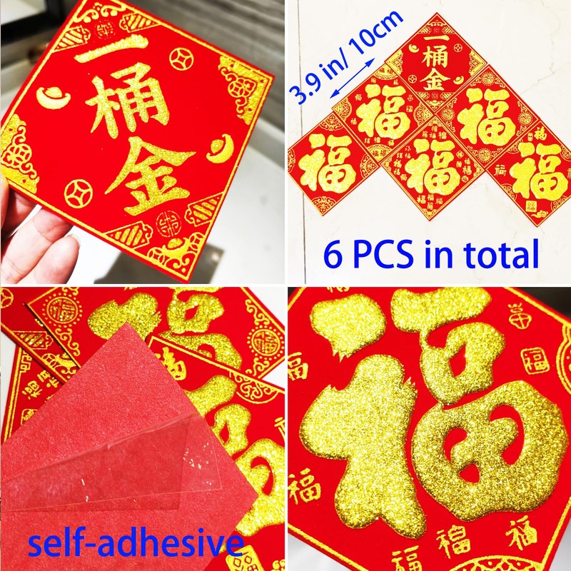 - Perfect Size and Quantity: 6pcs Fu couplets in one package, each size is 3.9 x 3.9 inches/10 x 10 cm, easy stick on door frames, entrances, windows, vases, cabinets or fridges, etc. creating a festive atmosphere at home, offices, or shops