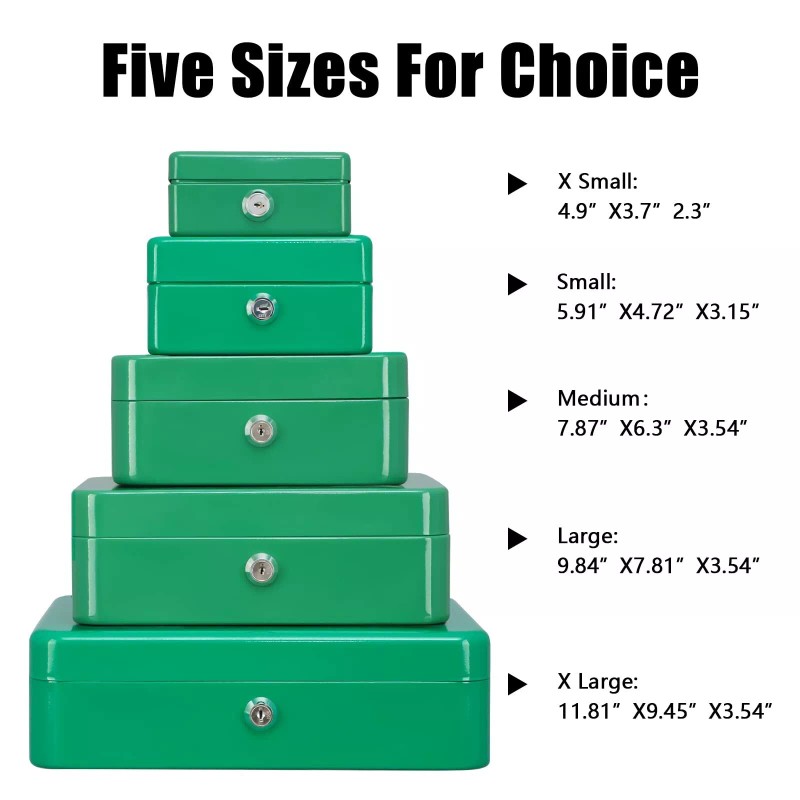 KYODOLED Large Lock Box with Money Tray,Storage Cash Box with Lock,Safe Metal Box for Money,9.84"x 7.87"x 3.54" Green Large