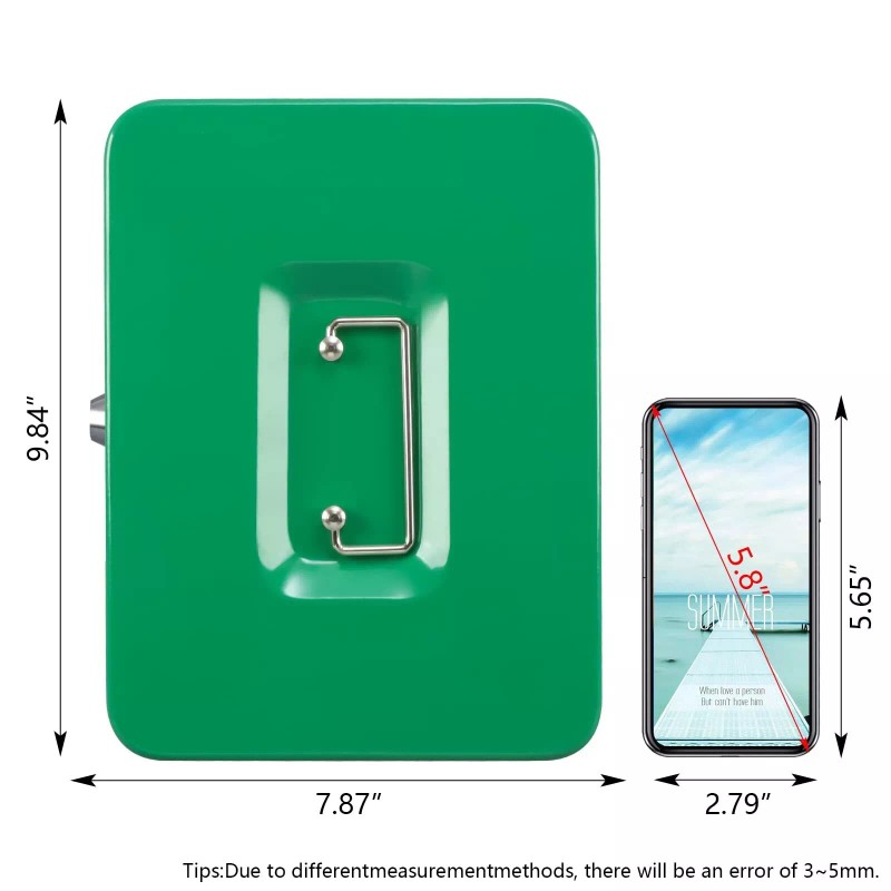 • SIZE AND COLOR: Money box with slot size is 9.84"x 7.87"x 3.54" (250*200*90mm). Color is Fesh Green.