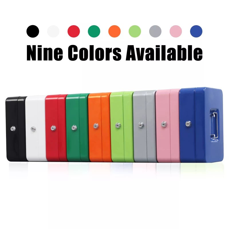 • HIGHLY QUALITY: Cash box is made of durable steel which is solidly built and can prevent it from drops and impacts.Equipped with a wide carrying handle, you can transport your locking cash box easily.