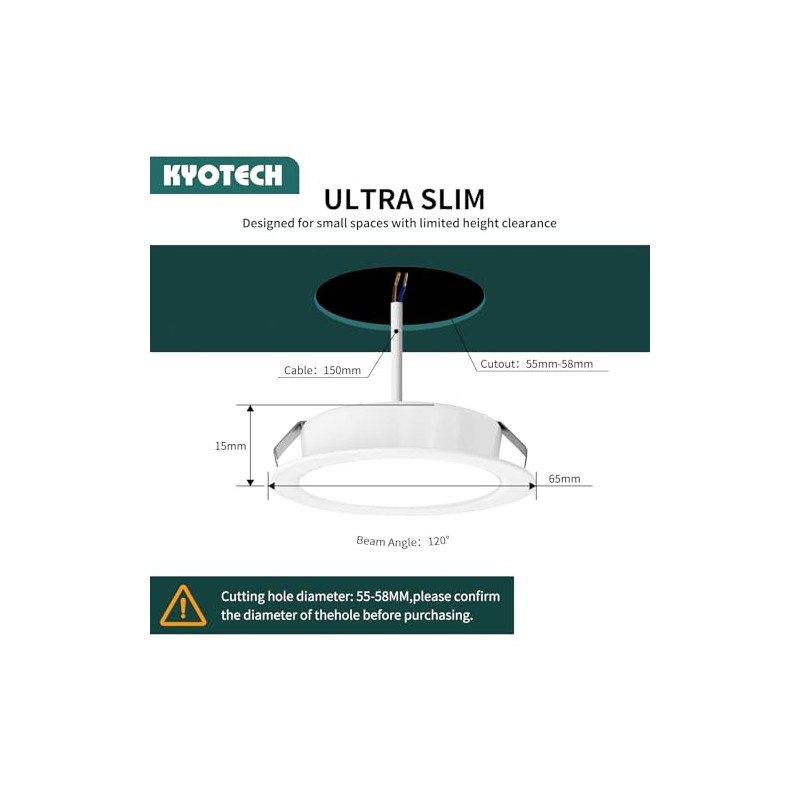 - ??Einfach zu installieren??Lochausschnitt 55-58mm, Au?endurchmesser 65mm, Einbautiefe 20mm, 14cm Anschlusskabel. 20mm Flache M?bel Einbaustrahler Ultraflaches Design, besser geeignet f??r kleine R?ume